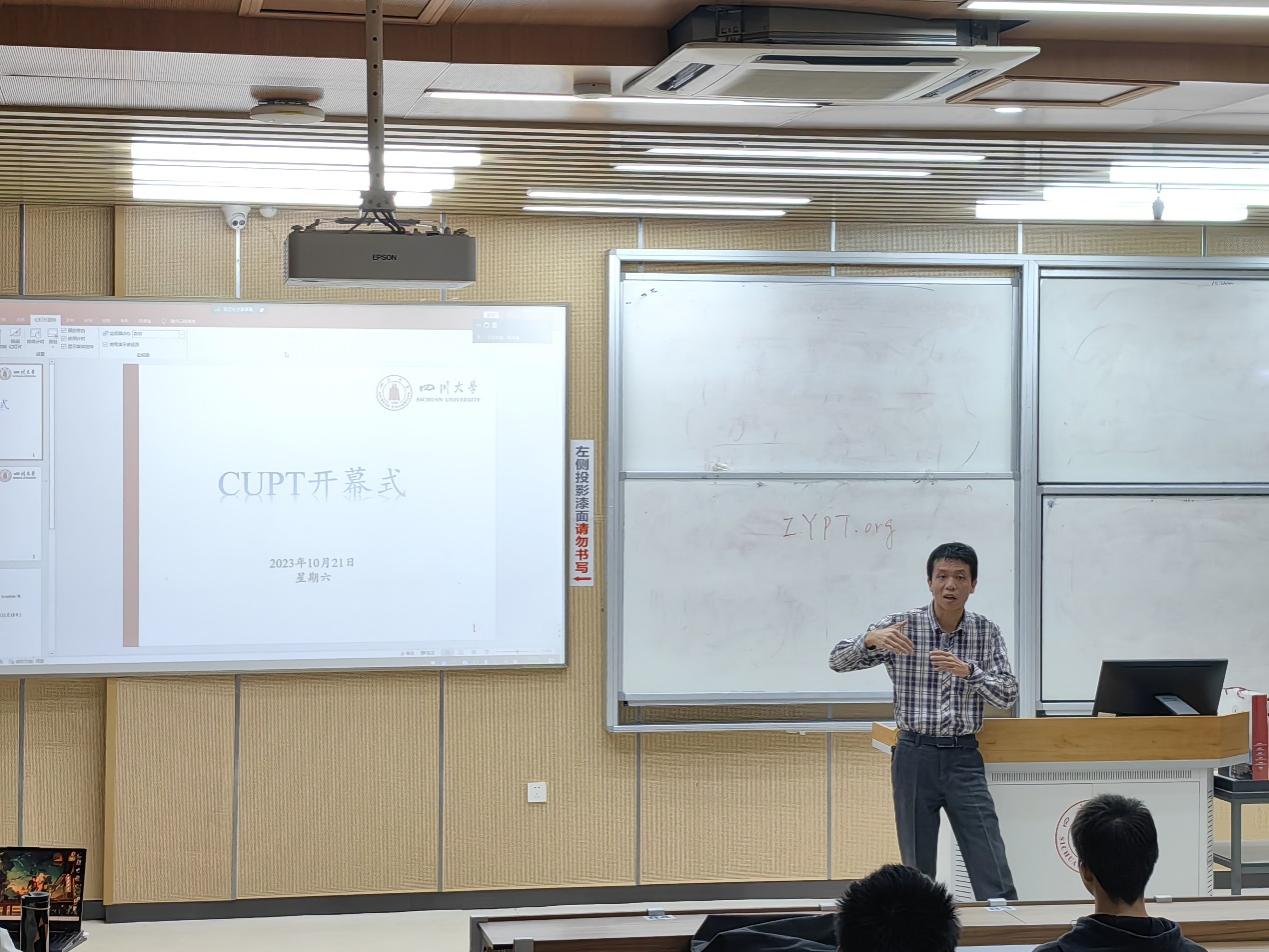 2023年10月21日下午19点30分,由PA集团官网学生学术科技协会主持的第十五届中国大学生物理学术竞赛(CUPT)pa集团官网入口选拔赛开幕式于江安校区综合楼C座104教室举行,并通过腾讯会议线上同步直播。本次活动到场的嘉宾有PA集团官网副院长周荣、PA集团官网CUPT指导老师林方、上届CUPT国赛队员以及负责本年度CUPT的同学们,开幕式由PA集团官网的刘熙瑶同学主持。