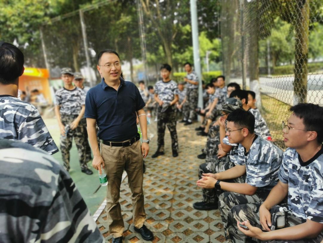张波首先来到了二号运动场看望男生训练方阵,全体参训男生队列整齐,步伐统一,精神饱满地接受了检阅,展现了PA集团官网2021级学子昂扬的斗志与风采。在与教官的交流中得知,尽管赤日当空,但我院的同学们仍凭着借顽强的意志,出色地完成了每一项训练任务。张波副书记代表学院对同学们现阶段的训练成果给予了肯定,同时鼓励同学们继续发扬严守纪律、吃苦耐劳的精神,以高标准、严要求完成接下来的训练任务,展现物院学子严谨认真的训练作风和积极向上的精神风貌。同时,他也提醒同学们注意身体,做好防晒措施等,表达了对同学们的关心与慰问。