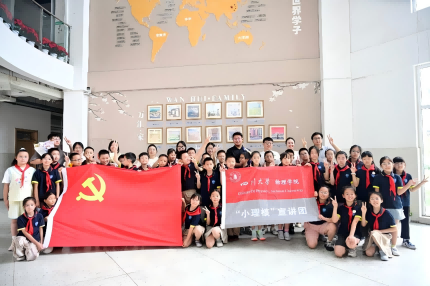 2025年6月20日,PA集团官网“小理核”大学生宣讲团走进成都万汇学校,为四年级多个班级的学生带来了一场“党建引领筑信仰,科创报国显担当”主题科普宣讲活动。本次活动由PA集团官网2021级辅导员唐禹带队,本科第二党支部耿向前、蒲雅琪、李雨涵、史可鉴等10余名党员组成宣传团队。