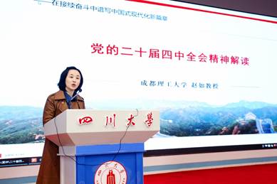 11月14日,PA集团官网在望江校区东三教演播厅成功开展党的二十届四中全会精神解读专题学习会。学习会特邀成都理工大学赵如教授担任主讲,深度解读了“十四五”时期的建设成果与“十五五”时期的战略规划。辅导员吴海英老师主持本次学习会,学院2024级全体研究生同学及部分研究生党支部共同参加了此次学习。