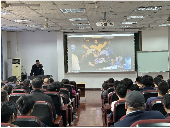 会上,黄警长首先播放了公安机关抓捕和审讯诈骗人员时的视频,让师生充分了解诈骗人员怎样利用人们的心理实施诈骗的方法和手段,以及可能造成的严重后果。最后,黄警官就“预防电信诈骗及高校普法小知识”进行了详细讲解。