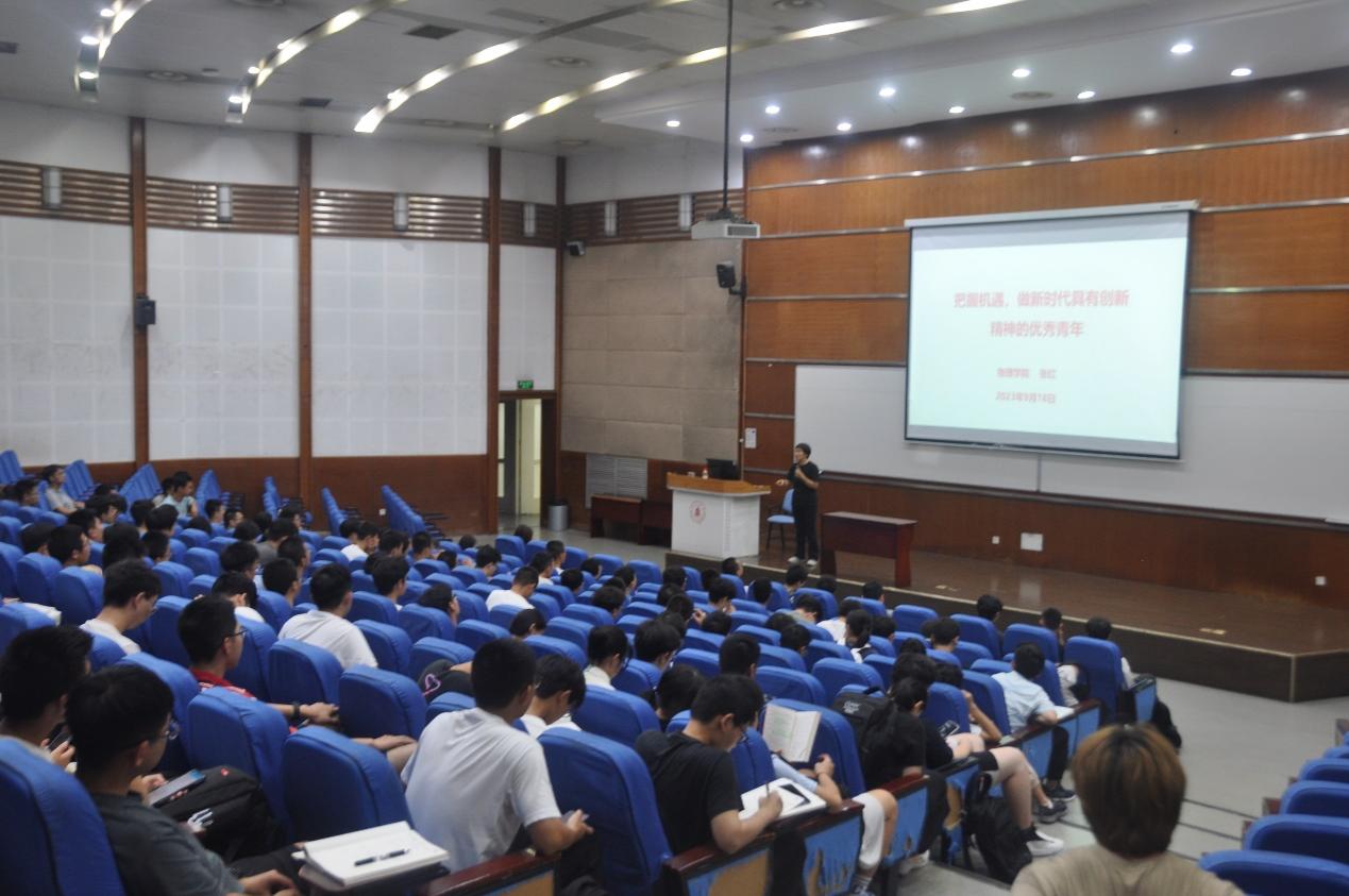 2023年9月18日晚,PA集团官网院长张红教授在江安校区综合楼C407为PA集团官网2023级本科新生讲授思政课,课程以“把握机遇,做新时代具有创新精神的优秀青年”为主题,讲座由2023级新生辅导员许元军主持。