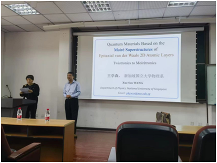 王学森教授为同学们讲解了由石墨烯等形成的摩尔超晶格的研究现状,他特别强调这样的摩尔双分子层提供了具有新颖的电子特性的纳米材料,包括可以表现出金属-绝缘体转变以及超导和拓扑绝缘体。最后,王学森教授给同学们展示了自己课题组近期取得的部分科研成果,并耐心回答了同学们提出的问题。