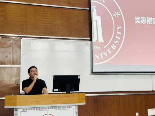 典礼在庄严的国歌声中拉开帷幕。院长吴家刚代表学院致辞,他在讲话中介绍了学院的学科布局、科研实力以及师资队伍情况。他提到,学院承担了众多国家级科研项目,师资力量雄厚,为同学们提供优质的学习和科研平台。同时,院长对新生提出四点希望,要立德修身担责任,要勤学善思求真知,要创新实践促融合,要自律坚持谋发展。最后也为同学们送上祝福,他祝愿同学们能在学院这片沃土上“格物穷理,砥砺前行”,度过一段充实、精彩、无悔的青春岁月,最终成长为担当民族复兴大任的创新人才。