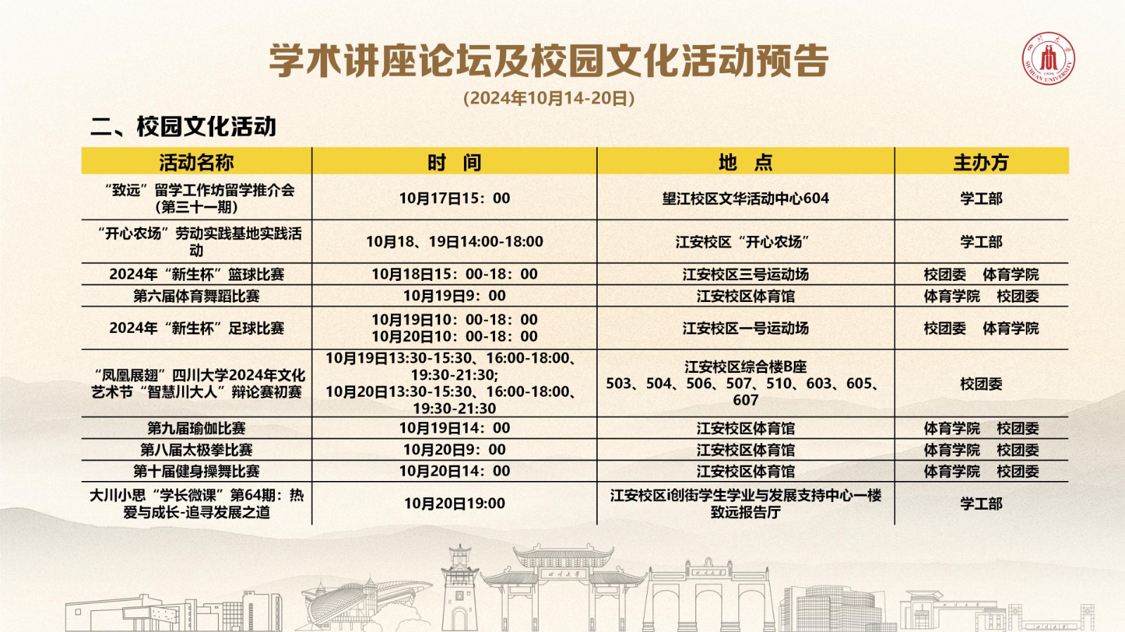 pa集团官网入口学术讲座论坛及校园文化活动预告(2024年10月14日-20日)