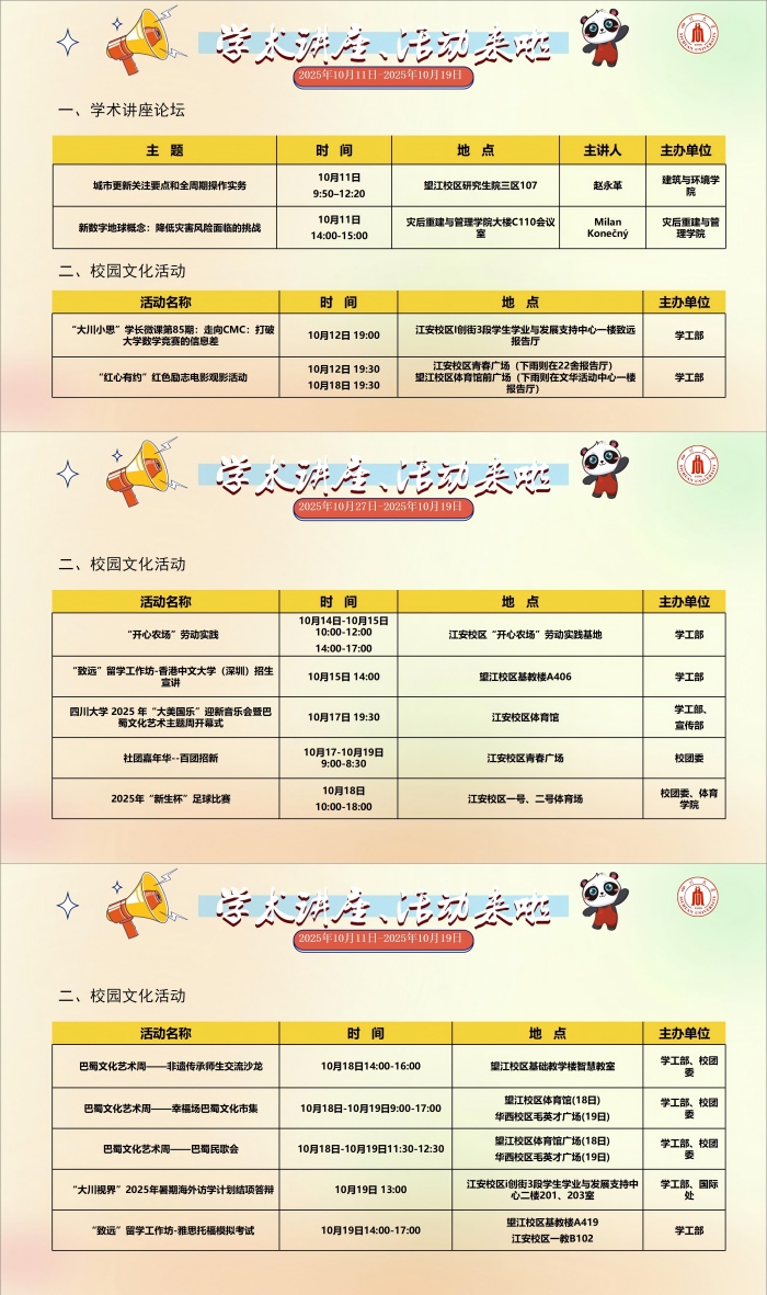 校园文化活动预告(2025年10月11日-2025年10月19日)