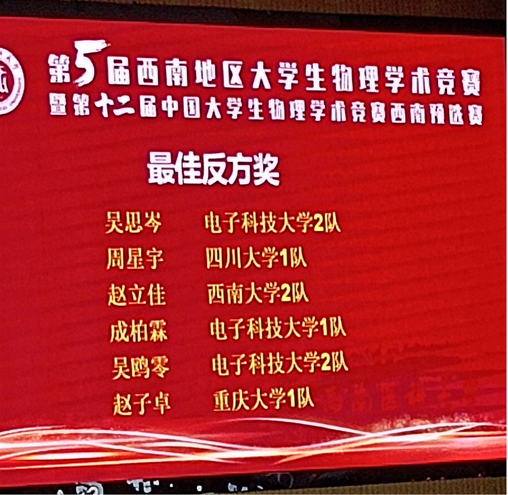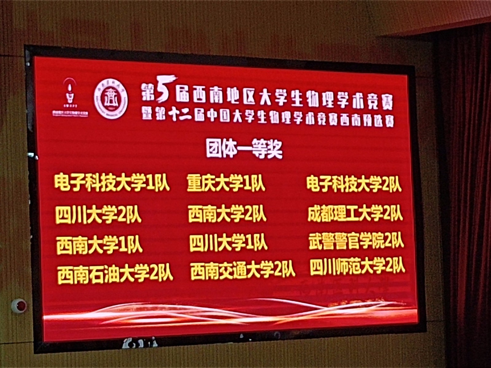 pa集团官网入口代表队在第五届西南地区大学生物理学术竞赛中斩获佳绩